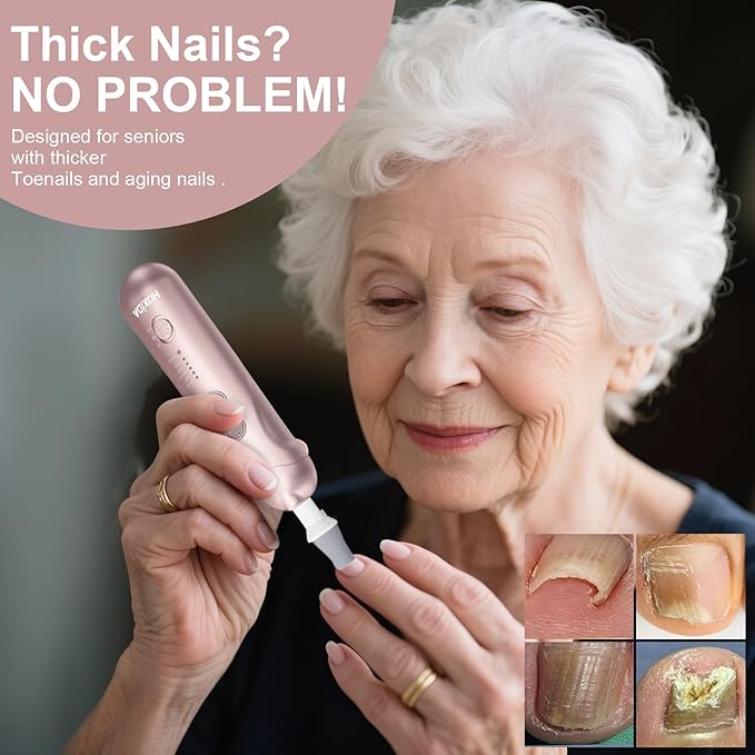 - Professional Manicure and Pedicure Set: This electric nail file is design for hand and foot care, can be used for all-around shaping, buffing, grinding, polishing, cuticle, hard skin, callus removing. perfect manicure kit for women trimming, grinding and polishing natural nails and toe nail grinder kit for thick nails. You will enjoy this manicure pedicure tool kits !!! This thick toenail grinder is perfect for women, men, seniors.