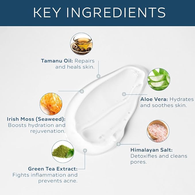 - 100% Natural Care: This natural facial cleanser is crafted with pure, plant-based ingredients to keep your skin balanced, hydrated, and refreshed. Infused with aloe vera, green tea extract, tamanu oil, and Himalayan salt, it nourishes, soothes, and supports healthy, glowing skin.