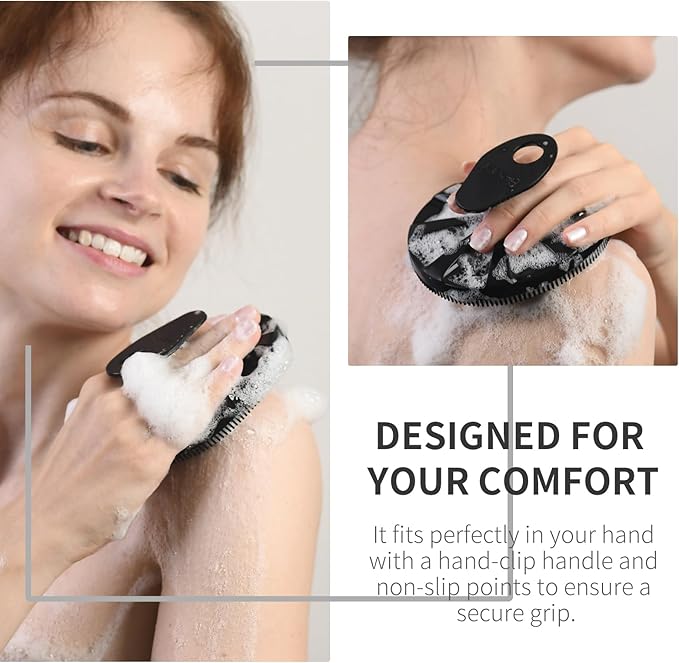 - ELEVATE YOUR SHOWER ROUTINE: Upgrade your bathing experience with our brand-new 3rd-generation silicone body scrubber. Featuring two unique bristle designs - fins and points - this strategic arrangement ensures superior lather and exfoliation, leaving you feeling exceptionally clean.