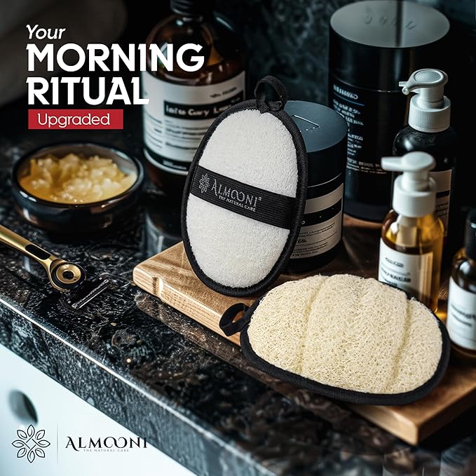 - DUAL-SIDED DESIGN: This mens loofah combines a natural lufas for men surface for deep cleaning with a soft cotton back for lathering. Perfect as a body scrubber for men who want both exfoliation and comfort in one pad.