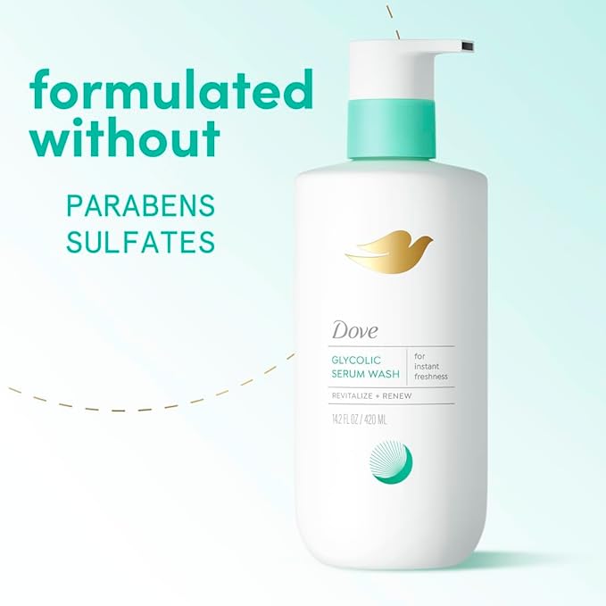 Dove Glycolic Serum Body Wash for Women - pH Optimized Feminine Wash For Skin Renewal & Odor Control, 14.2 oz