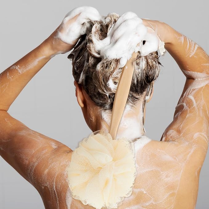 - Good Foaming Effect: the bath ball of this long handled sponge adopts the mesh design, so you can produce rich foam just by squeezing a little bath gel (not included) on it, saving on shower gel and making you have a good cleaning effect