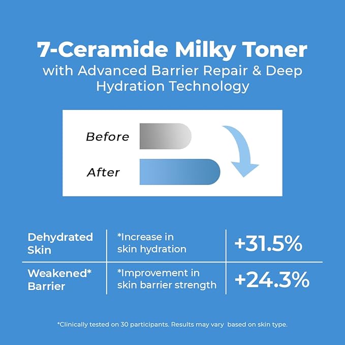- Long-Lasting Hydration & Moisture Lock – Experience deep, all-day hydration with this lightweight milky toner, enriched with 7 essential ceramides and milk protein. Helps plump and soften skin while locking in moisture from the very first use.