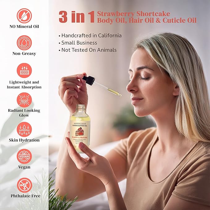 Strawberry Shortcake Body Oil: Moisturizing Body Oil for Soft, Glowing Skin with Almond & Jojoba Oil (4 fl oz)