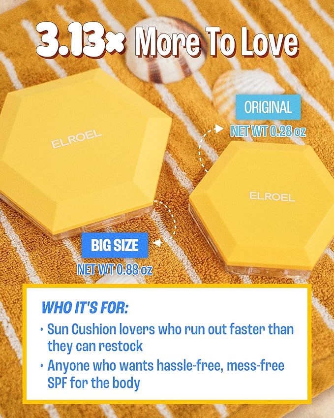 - SPF REAPPLICATION? PAT & PAT! Your sun-smart travel essential for SPF reapplication—this time in a 1.7x larger size for both face and body use! This larger-sized edition of Pang Pang Big Sun Cushion delivers the same hybrid blend of physical and mineral UV filters for a broad-spectrum coverage, all with a generously sized sponge puff and dispensing pad. Just go pat-pat —no mess, no stress.