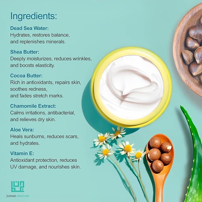 JUMAN Dead Sea Minerals Body Balm | Infused with Active Natural Ingredients & Vitamin E | Plant Rich Shea Butter | Moisturizing Lotion for Dry Skin | Suitable for Sensitive Skin | 7.1oz