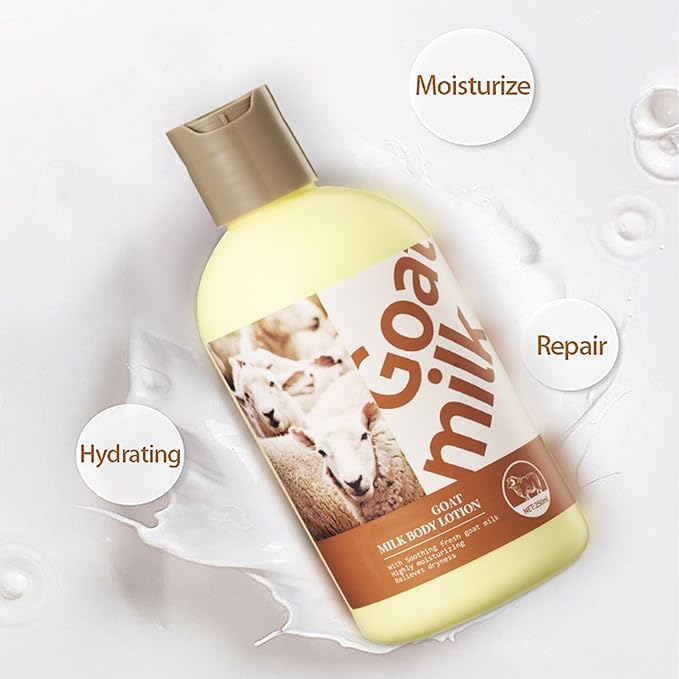 - [Ultra-Nourishing & Hydrating Formula] Indulge your skin with the deeply moisturizing benefits of our goat milk body lotion. Enriched with natural vitamins, this rich formula absorbs quickly to deliver long-lasting hydration. Perfect for dry, sensitive, or rough skin, it helps restore moisture balance.