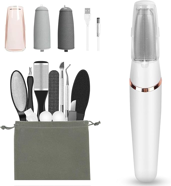 - 【What You Will Get】1x Electric pedicure tools for feet+ 2x Rollers +1x USB Cable+1xStorage bag+1x12 in 1 Stainless steel pedicure tool set(foot rasp, razor, sander, scrubber, callus remover, foot clipper, foot file, ect.), tough and durable smooth pedicure tools which can meet a variety of pedicure needs.The storage bag can hold all accessories, reducing the trouble of losing and searching accessories.