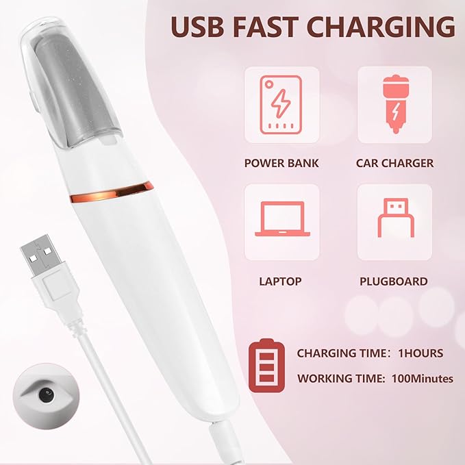 - 【Home Foot Care】 The smooth pedicure wand foot file is suitable for women to take foot care at home. They can enjoy foot SAP at home without going out. It only takes 1 hour to charge with USB charging cable, and the use time is 100 minutes. Pedicure wand can perfectly remove foot skin, dead skin, scab, hard skin, cuticle, etc., make your feet smooth.