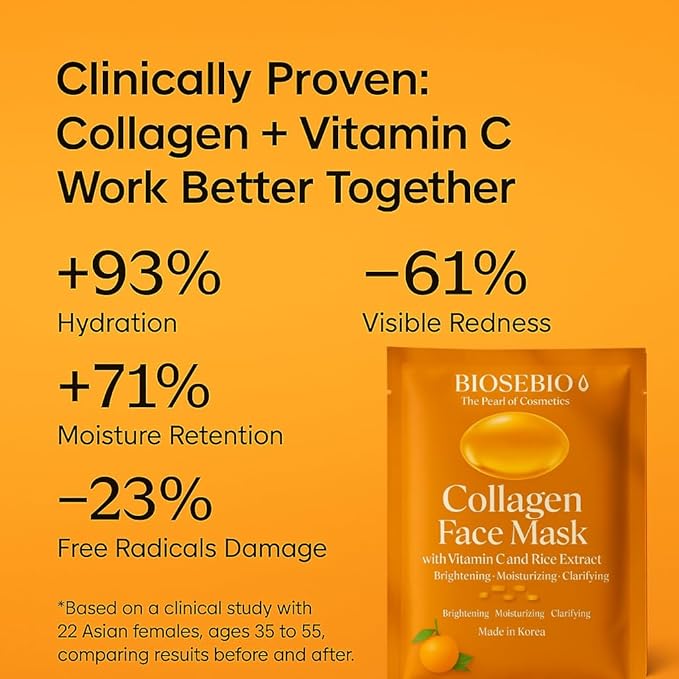 BIOSEBIO Korean Collagen Face Mask with Vitamin C & Rice Extract -5 Packs - Hyaluronic Acid Sheet Masks for Deep Hydration & Anti-Aging - Moisturizing Facial Skincare for Women