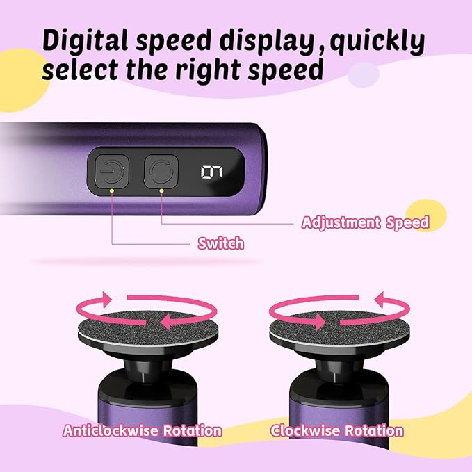 - ⚡️ 【9-Speed + Hold-to-Start Safety】 1-3 (sensitive skin), 4-6 (daily use), 7-9 (hard calluses). 2-second press prevents accidental starts.