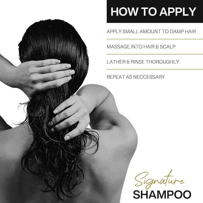 - SALON-QUALITY HAIR AT HOME: Begin with fully wet hair. Dispense a small amount of shampoo and gently massage into scalp using fingertips. Work the lather through to ends with smooth, downward strokes. Rinse thoroughly, repeating only if necessary. Complete your routine with our Signature Conditioner for ultimate hydration and shine.