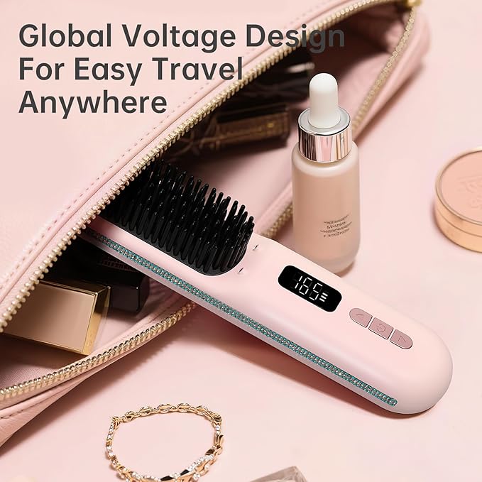 - Compact: Hair brush straightener compact size, crafted for effortless use, portable hair straightener cordless easy to pack and carry, a must-have for on-the-go styling. Cordless straightening brush travel-friendly size ensures you can keep your hair looking great anywhere, and also perfect gifts for teenage girls
