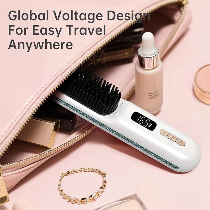 - Compact: Hair brush straightener compact size, crafted for effortless use, portable hair straightener cordless easy to pack and carry, a must-have for on-the-go styling. Cordless straightening brush travel-friendly size ensures you can keep your hair looking great anywhere, and also perfect gifts for teenage girls