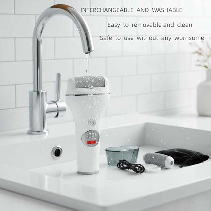 - 【3 Interchangeable Heads for Customized Pedicure Results】Tailor your care with three specialized heads: the Coarse Head for tough calluses, the Medium Head for smoothing rough patches, and the Fine Head for gentle polishing. Achieve salon-level smoothness on heels, balls of feet, and toes.