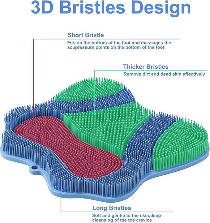 - 【Massage Foot Scrubber】The foot scrubber adopts three types of bristle designs, which can effectively massage the feet, improve leg blood circulation, relieve foot fatigue and tension, and also relieve heel pain and tension caused by joint acid, bringing a relaxing experience.