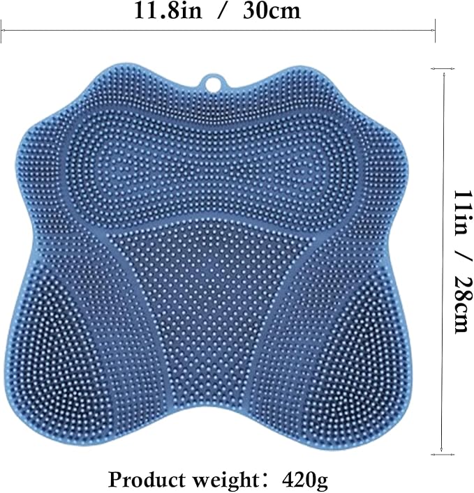 - 【Strong Suction Cup Design】 The silicone foot scrubber for shower is made of high quality silicone material, soft and comfortable, measuring 11.8 in x 11in. Equipped with enlarged strong suction cups on the bottom for stability. Equipped with hanging holes, easy to hang for drying and more space saving.