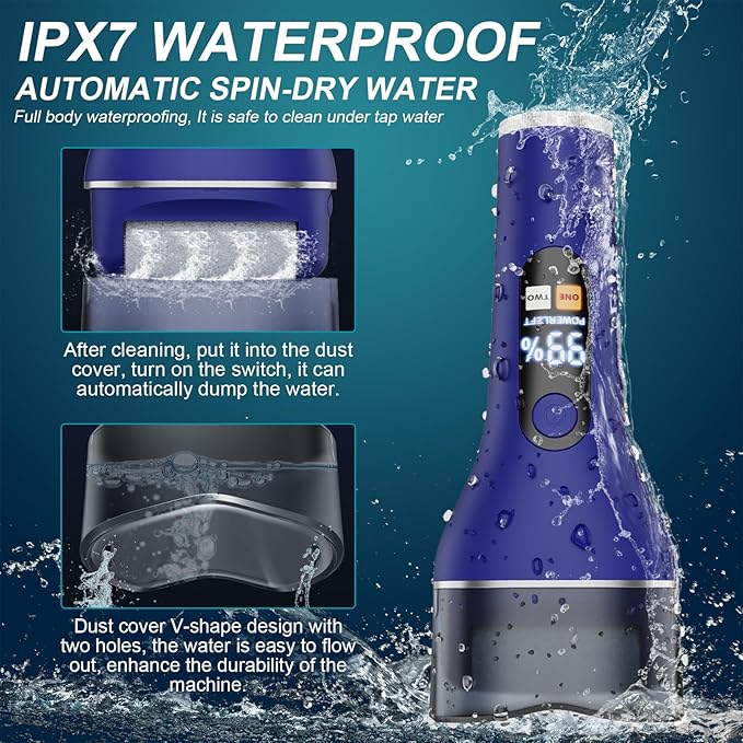 - 【IPX7 WATERPROOF -- AUTOMATIC SPIN-DRY WATER】Our dead skin remover foot grinder has IPX7 advanced waterproof grade, full body waterproof, dry and wet feet can be used, can be rinsed under the tap water; after cleaning, put it into the dust cover and press the starter switch can be automatically spin-dry water, easy to use, safe, the dust protection cover is designed with 2 small holes, so that the water is more easy to flow out, and at the same time increase the lifespan of the callus remover.