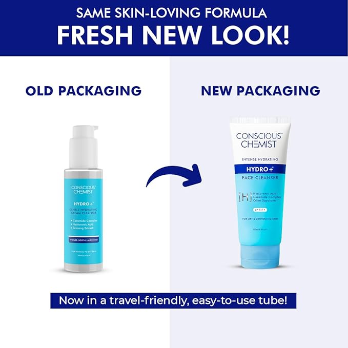 Conscious Chemist® Hydro+ Gentle Face Wash for Dry Skin | 100ml | Hydrating Facial Cleanser with Hyaluronic Acid, Ceramides & Ginseng | For Smooths & Softens Skin, Non Comedogenic | Men & Women