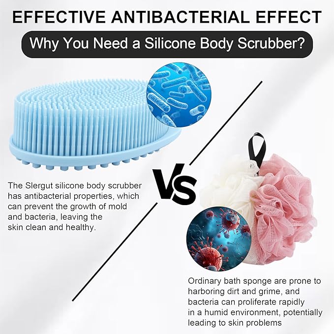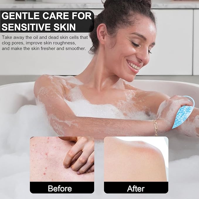- Premium Material, Suitable for Sensitive Skin: Crafted from BPA-free, ultra-soft, food-grade silicone, this body scrubber is gentle on all skin types, especially sensitive skin. Its soft silicone bristles won't cause irritation or redness, making it suitable for children, women, and men alike.