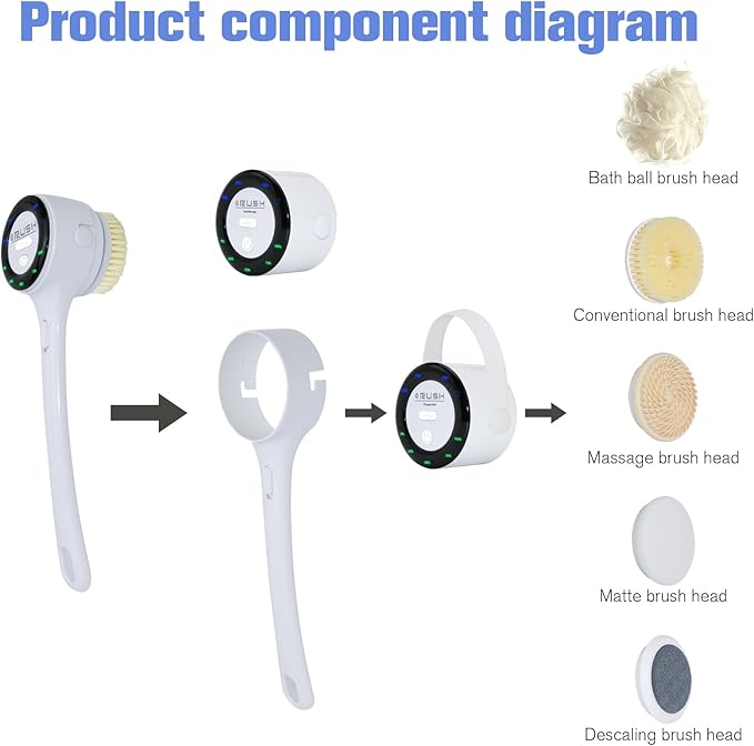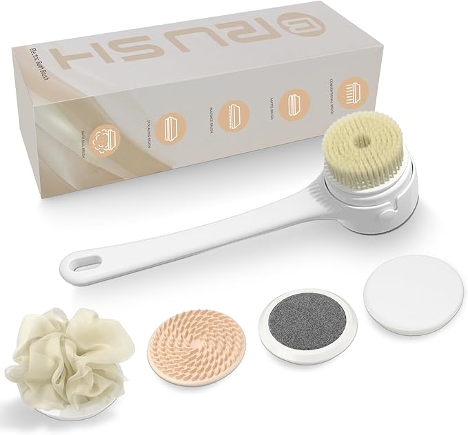 - Multi-functional bath brush: The electric bath brush is equipped with five different types of bath brush heads, including soft-bristled cleaning brush heads, bath brush heads, massage heads, scrubbing heads and grinding heads. This body bath brush is perfect for removing dead skin cells, oils and stains from the body, relaxing and comforting the entire body, etc. A set of electric body brushes can meet your various body cleaning needs