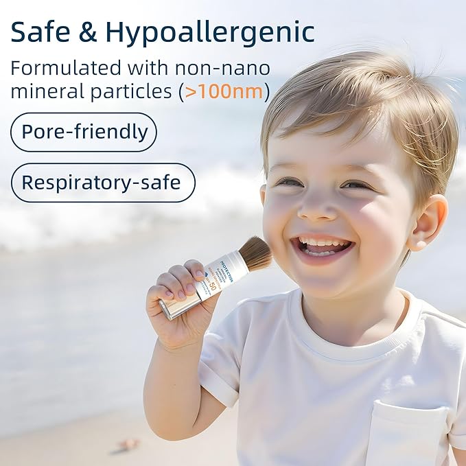 - Non-Greasy: Unlike heavy or oily sunscreens, our powder formula feels weightless on the skin and leaves no sticky residue, ideal for scalp and hairline. Enjoy the sunshine with your kiddo without worrying about scalp sunburn