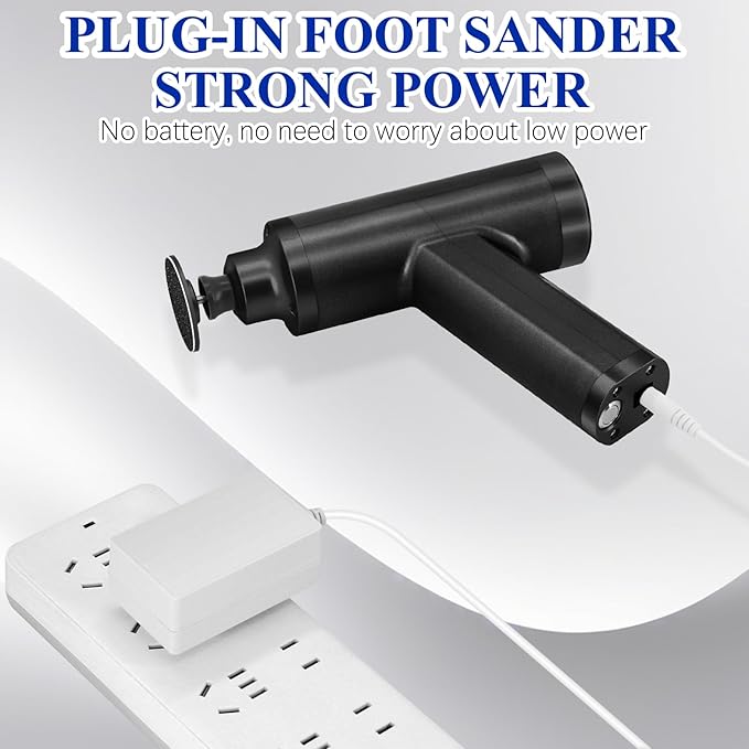 - HIGH TORQUE, STRONG POWER: Plug in electric foot sander without using batteries, so the power becomes stronger and there is no need to worry about low battery. You can comfortably remove dead skin and calluses.