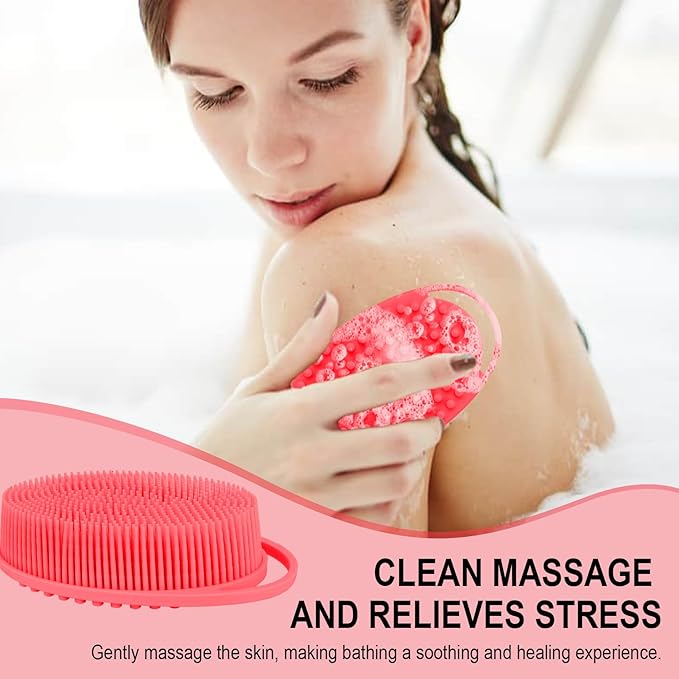 - 2-in-1 Design for Massage and Exfoliation: Each side of the shower body scrubber has a different pad texture. One side has long, soft bristles with strong resilience for quickly cleansing every body contour. The other side has slightly firmer raised bumps that stimulate blood circulation with gentle friction. Enjoy a relaxing massage during every shower and hair wash.