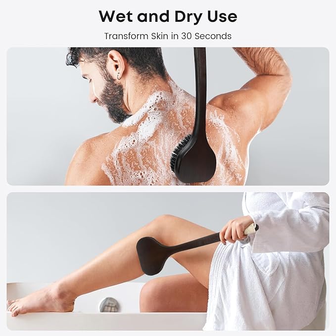 - Improves Skin Condition: Stiff natural boar bristles sweep away dead skin, dirt, and excess oil effortlessly, unclogging pores for visibly smoother, clearer skin. Prevent body acne and ingrown hairs by lifting trapped impurities and exfoliating deeply without irritation. Transform your showering into a self-care ritual