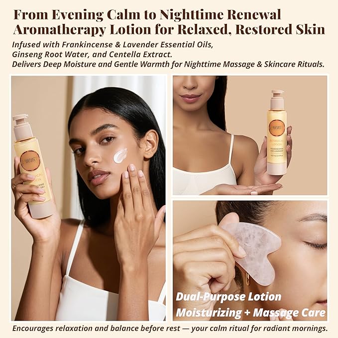 Frankincense & Lavender Aromatherapy Body & Massage Lotion, Hydrating Moisture with a Warm Resinous-Floral Essential Oil Aroma for a Gentle Self-Care Experience, 3.4 fl oz / 100 ml