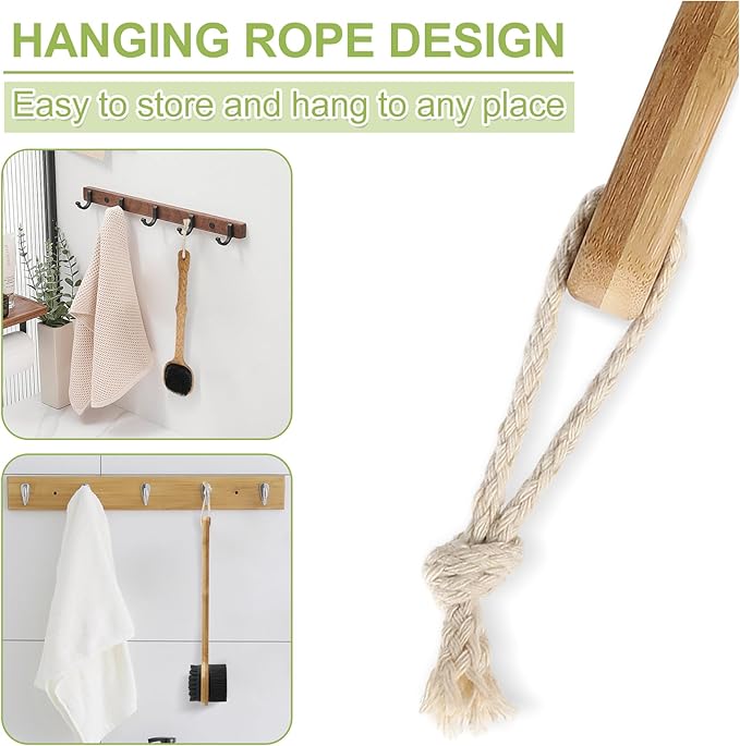 - Natural Bamboo and Comfortable Long Handle Design: This Silicone Back Scrubber for Shower has a extra long handle which is made of Natural Bamboo, which is non-slip, sturdy and strength-saving, the handle is ergonomic and fits the body curve, can reach anyplace when you want to wash. With this body scrubber, you will definitely get an easy and pleasing shower