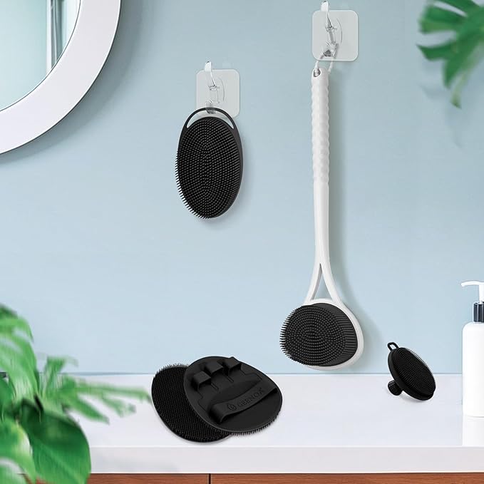 - 【Premium Safe Material】GEENOA silicone face/body/back scrubbers are made of food-grade silicone. No molding, BPA-Free, super-durable, odor-free and non-toxic. Back scrubber’s handle is ABS material, strong and sturdy holding, No-bending as other handle made of soft silicone.