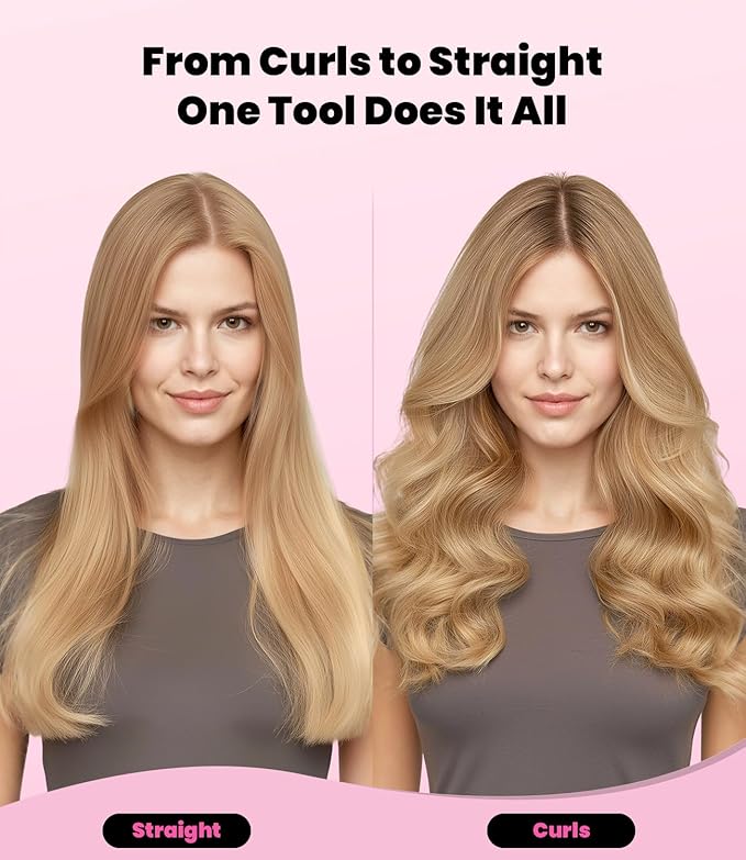 - Hair Straightener and Curler 2 in 1: The true value of Terviiix Golden Vivid Styler hair iron can bring to you is that it helps you create beachy wave, bouncy curls and straight tresses perfectly. Transforms messy hairstyle into all kinds of professional back-from-salon results. flat iron curling iron in one to create multiple hairstyles