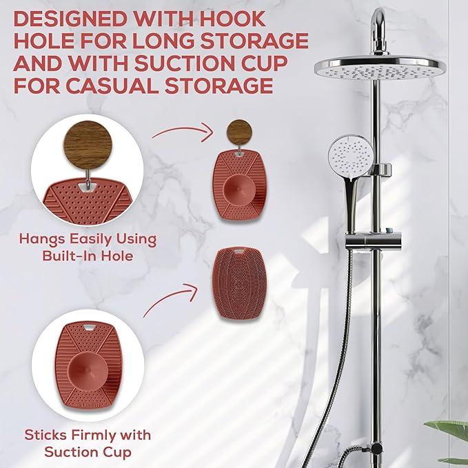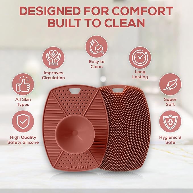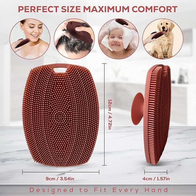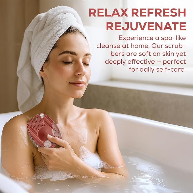 - MATERIAL: 100% Food‑Grade Silicone. Made from soft, skin‑friendly, durable silicone with excellent elasticity and tear resistance. A hygienic and long‑lasting body scrubber that stays clean, dries quickly, and keeps skin fresh after every shower