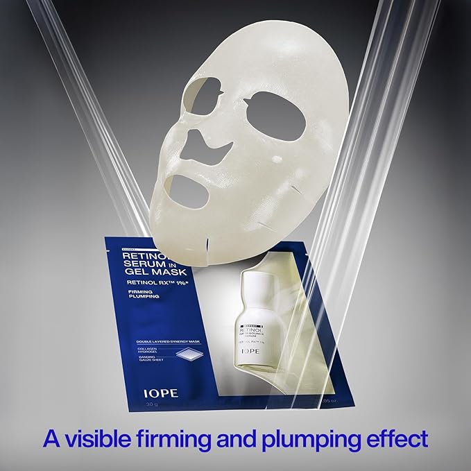 IOPE Retinol Expert 0.1% Anti-Aging Serum, Gel Mask 6 Sheets Set, Daily Self Care Essential Kits, Korean Skincare Glow