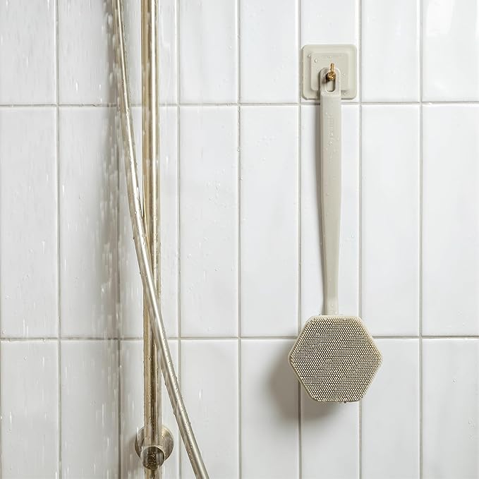 TOOLETRIES Silicone Back Scrubber with Hook - Exfoliating Shower Brush, Back Washer for Men, Durable Back Brush with Long Handle - Long Lasting Bath & Shower Accessories - Sand