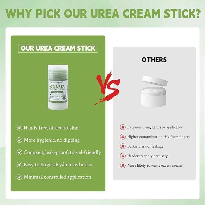 - 60% Urea & 2% Salicylic Acid: This ultra-concentrated cream combines 60% urea to deeply moisturize and soften tough, cracked skin, while 2% salicylic acid gently exfoliates to remove dead skin and smooth rough patches.