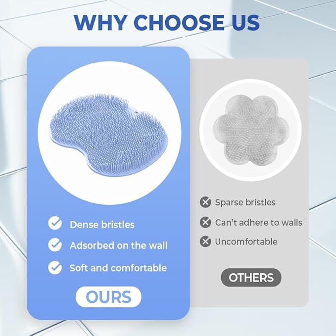 - 【Universal Shower & Tub Compatibility】The thermo-responsive silicone construction of this foot scrubber for shower systems molds to curved tub surfaces (up to 35° slope) without losing adhesion. Measuring 16"x24", it accommodates standard shower stalls and Japanese-style wet rooms. Includes 6 repositionable suction cup foot scrubbers clusters for customized placement around drain covers or bath fixtures.