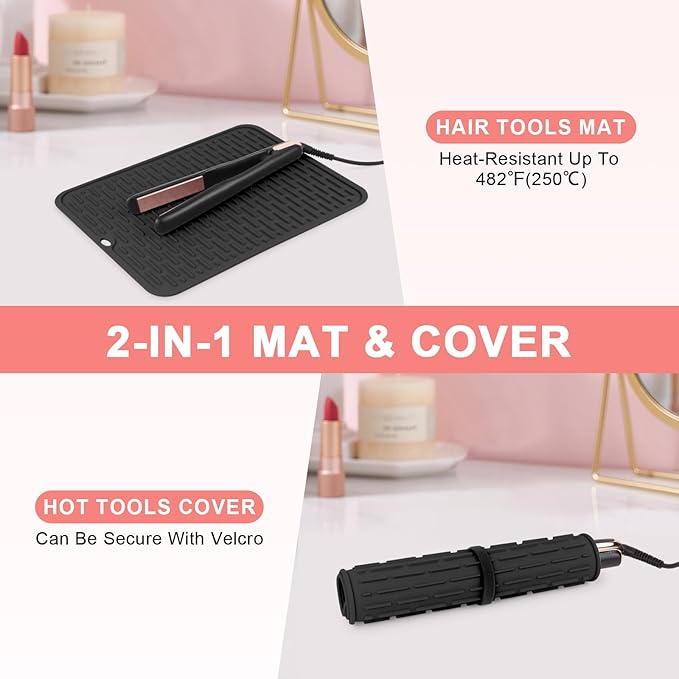 - Versatile Designs: This hot tools mat with excellent flexibility can easily roll up and be secured with velcro; The hair straightener mat features a unique raised-texture design that is skid-proof, keeping your hot hair tools always in place