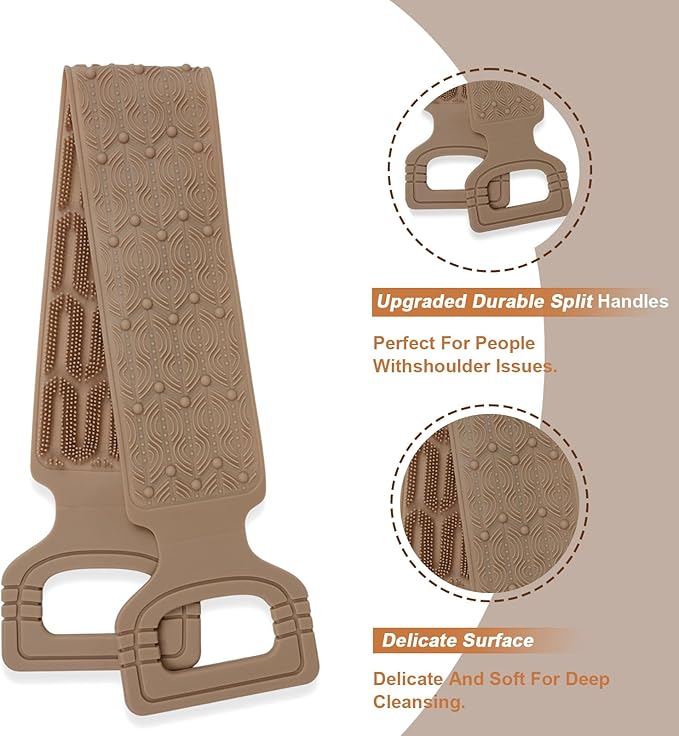 1 Pack Exfoliating Back Scrubber for Shower,Double-Sided Back Scrub Washcloth Strap,Cover The Entire Back for Men Women,Silicone Back Massage Bath Brush,Exfoliate and Massage (Brown)