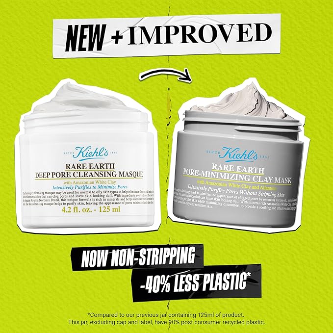 - Contents: 1x Kiehl's Rare Earth Deep Pore Cleansing Mask, Pore-Minimizing Face Mask, Formulated with Amazonian White Clay that Detoxifies and Absorbs Excess Oil, Skin Feels More Refined.