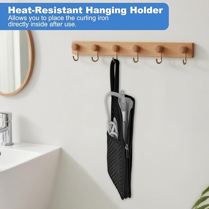 - Dual Pouch & Heat-Resistant Mat: This versatile 2-in-1 design works as a protective mat and a storage pouch. Safely stow hot styling tools right after use—no cooling time needed—to shield surfaces and ensure secure travel.
