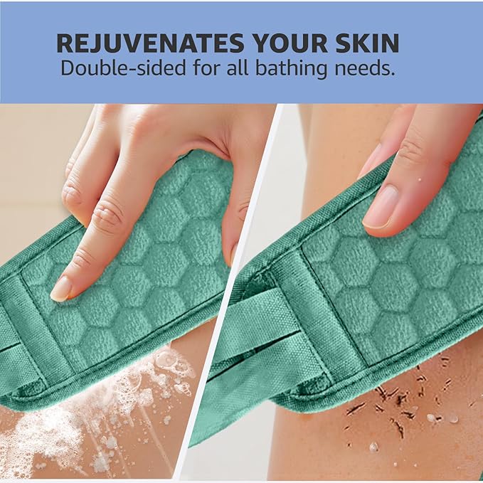 Back Scrubber for Shower with Handles, 40 Inch Extra Long Double-Sided Exfoliating Bath Strap, Textured Body Washer with Extended Reach for Deep Cleaning (Green)