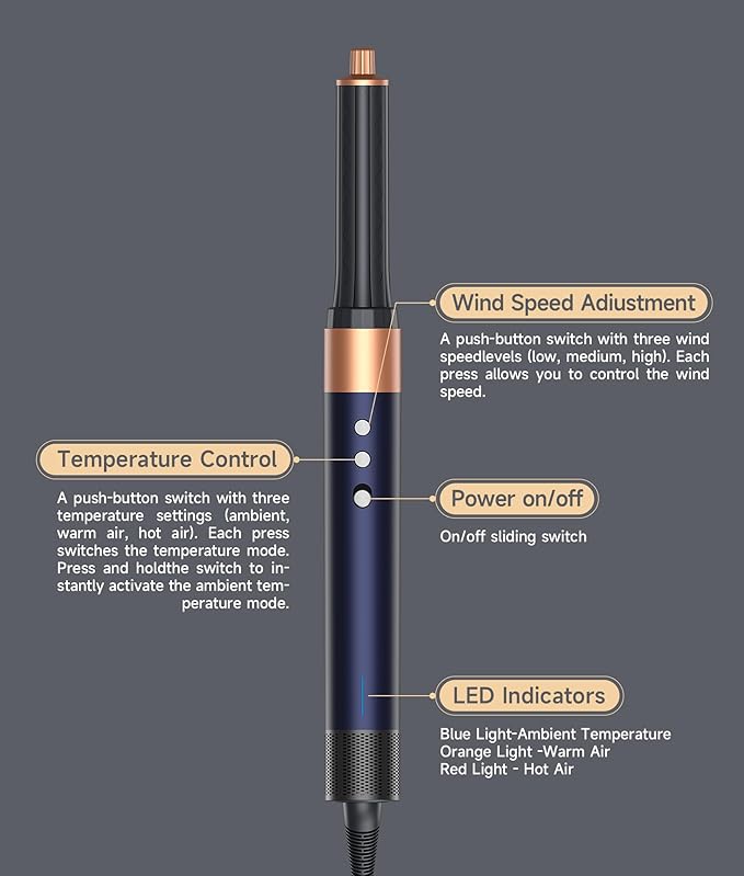 - 2. Dual functions: The 30mm air curling iron uses the 'Coanda effect' to automatically attract and quickly style hair. It can be used in both L/R directions without changing attachments, suitable for fine hair and shoulder-length hair. It is easy to use and quickly creates beach-style waves, achieving a professional salon hairdressing effect.