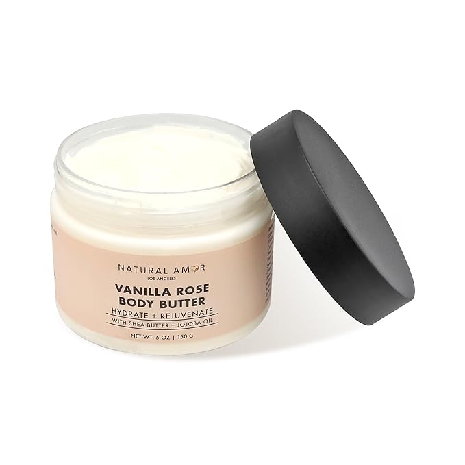 Natural Amor Vanilla Rose Body Butter with Shea Butter & Jojoba Oil – Deep Moisturizing Cream for Dry Skin – Non-Greasy Daily Skincare for Women & Men – 5oz