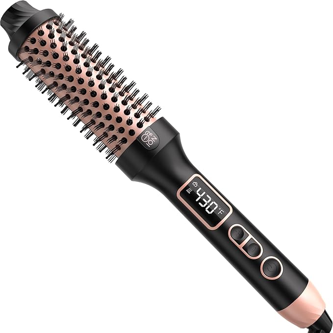 - 【10 Temperature Settings & LED Digital Display】This 1.5 inch thermal brush provides up to 10 adjustable temperature settings to meet the needs of different hair types, and the range of 250℉ to 430℉ ensures that whether it is 2A or 4A hair, it can be perfectly styled. The specially equipped LED display allows you to easily find the most suitable temperature to create a wonderful hairstyle.