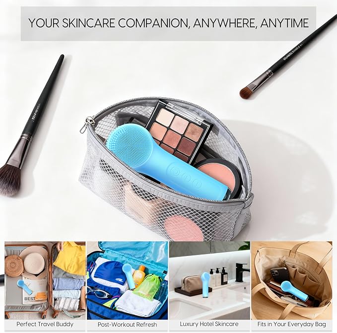 - Easy Deep Cleansing: This portable facial cleansing brush is made of ultra-soft silicone, which is gentle to the touch and suitable for all skin types. Whether you have sensitive skin, dry skin, combination skin or oily skin, it can effectively remove dirt, oil and makeup residue. The brush head is divided into sections for precise cleaning of different parts, and the T-zone, cheeks and chin can be carefully cared for.