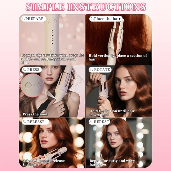 - 【40-Second Fast Heating & Prompt Tone】Compared to traditional hair irons, this automatic rotating curling irons heats up faster, so you won’t have to wait long to start styling. During use, a "beep" will sound after about 12 seconds, indicating that the current section of hair is fully curled – simple and clear. -