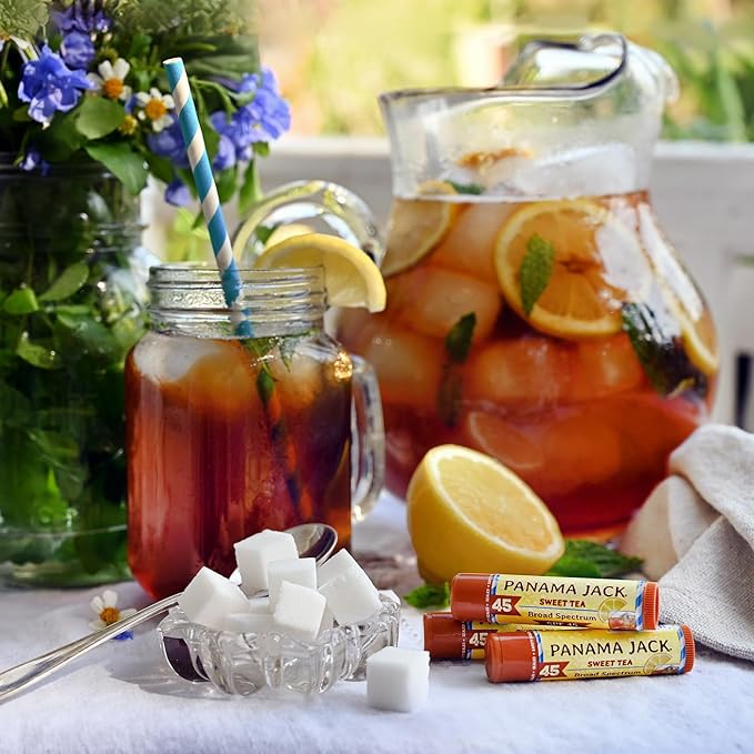 Panama Jack Sunscreen Lip Balm - SPF 45, Broad Spectrum UVA-UVB Sunscreen Protection, Prevents & Soothes Dry, Chapped Lips, Sweet Tea, 7-pack