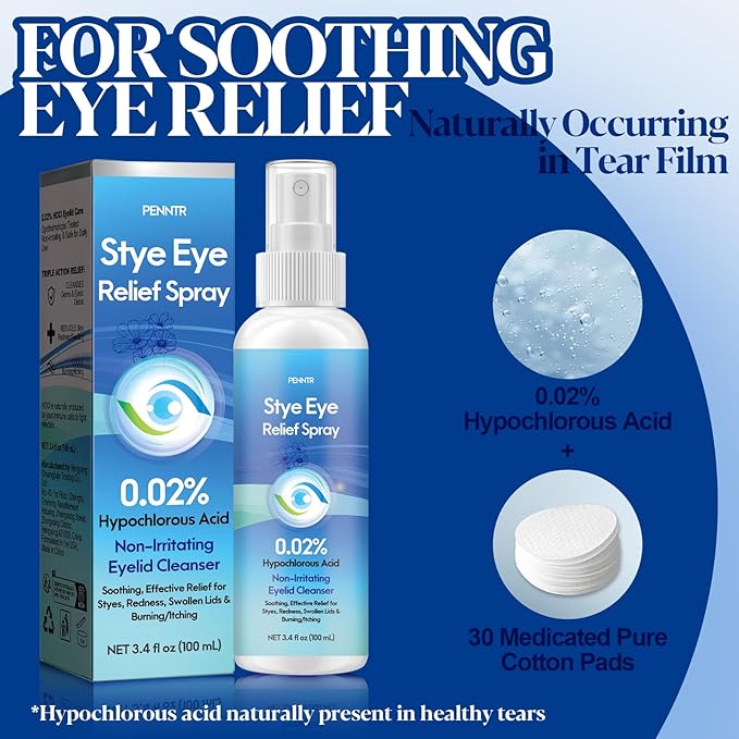 - 【Gentle Eyelid Support Formula】With stabilized hypochlorous acid, this non-stinging spray helps comfort temporary eyelid discomfort and promotes a balanced feeling.